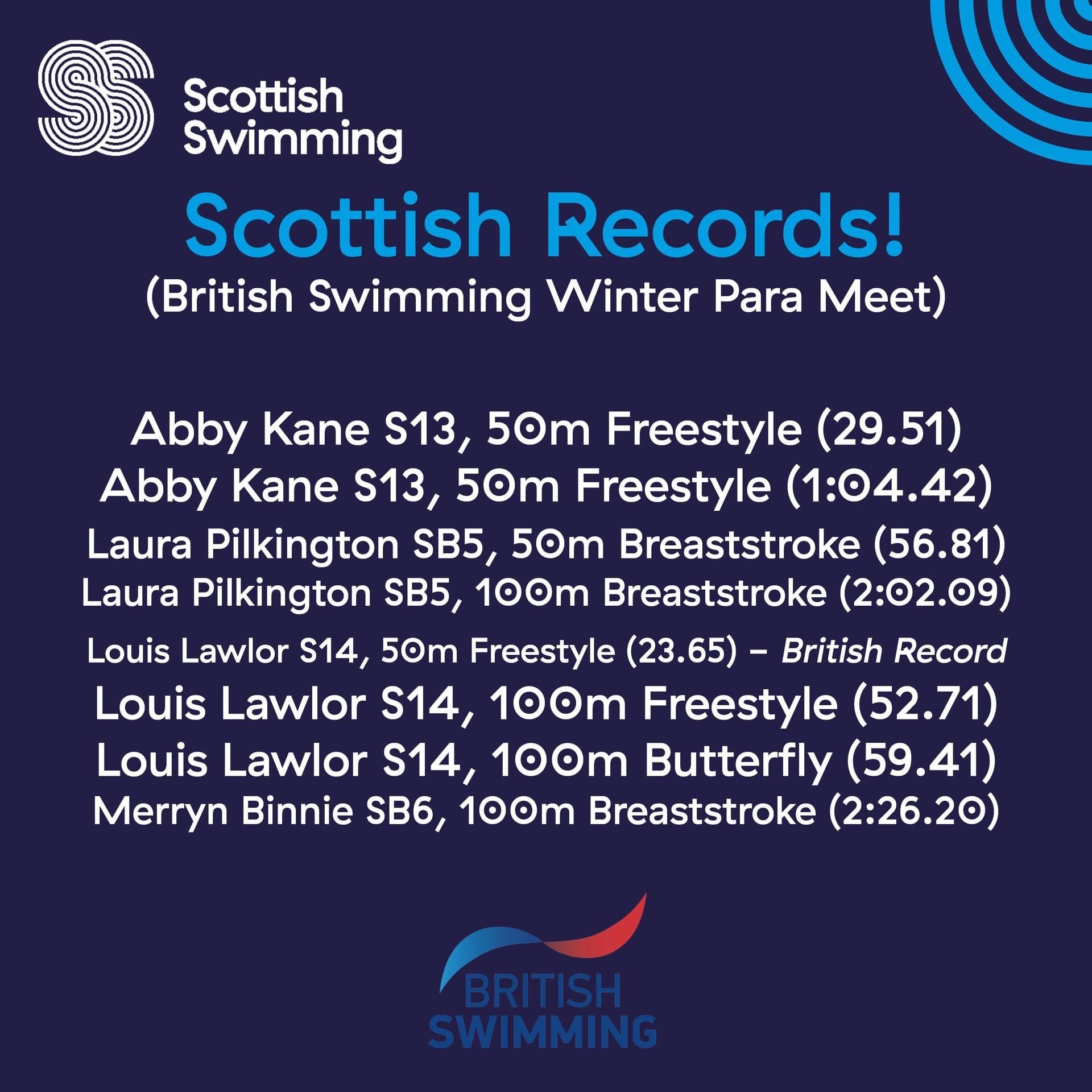 Among the British Records to fall was City of Glasgow Swim Team’s Louis Lawlor in the 50m freestyle (S14) – 23.65.