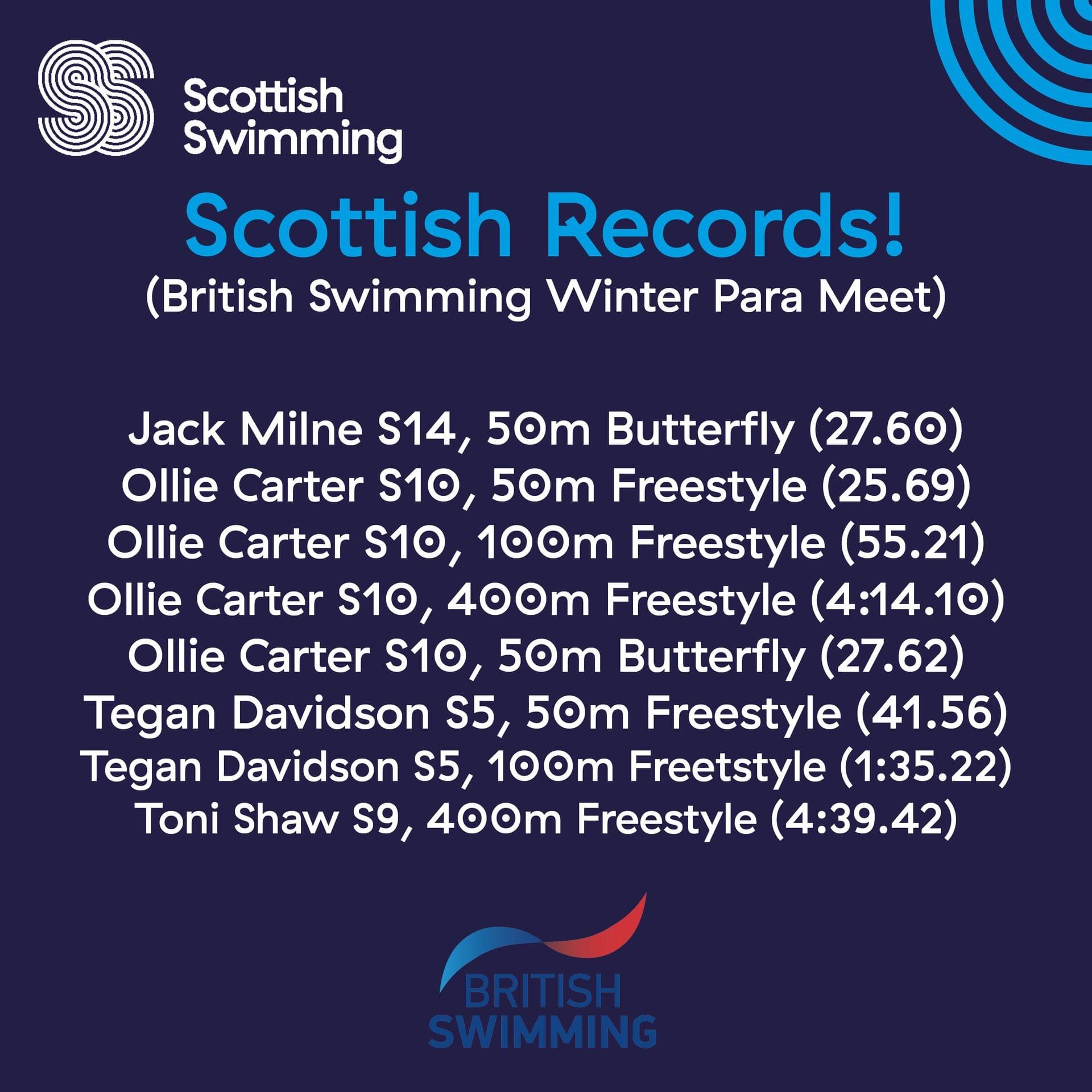 Scottish Records broken on Day 2 of the Meet included:
